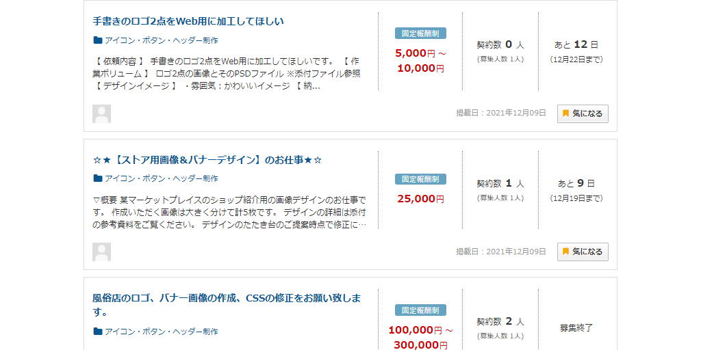 クラウドソーシングの案件を見ると、ロゴ制作・広告バナー制作の案件はかなりの数です。